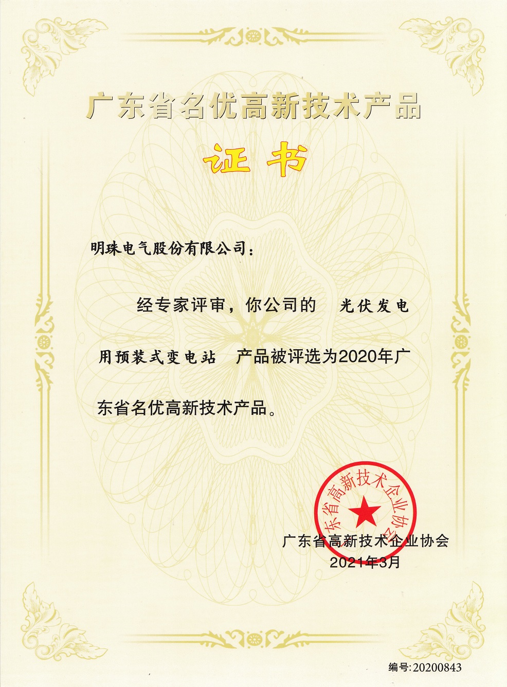 近日,IM(中国)电气自主研发的“光伏发电用预装式变电站”产品,凭借先进的技术性能水平、优质的产品质量和良好的经济效益等综合实力,成功获得“2020年广东省名优高新技术产品”称号。